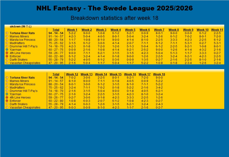 Statistik 2025/2026, Vecka 18